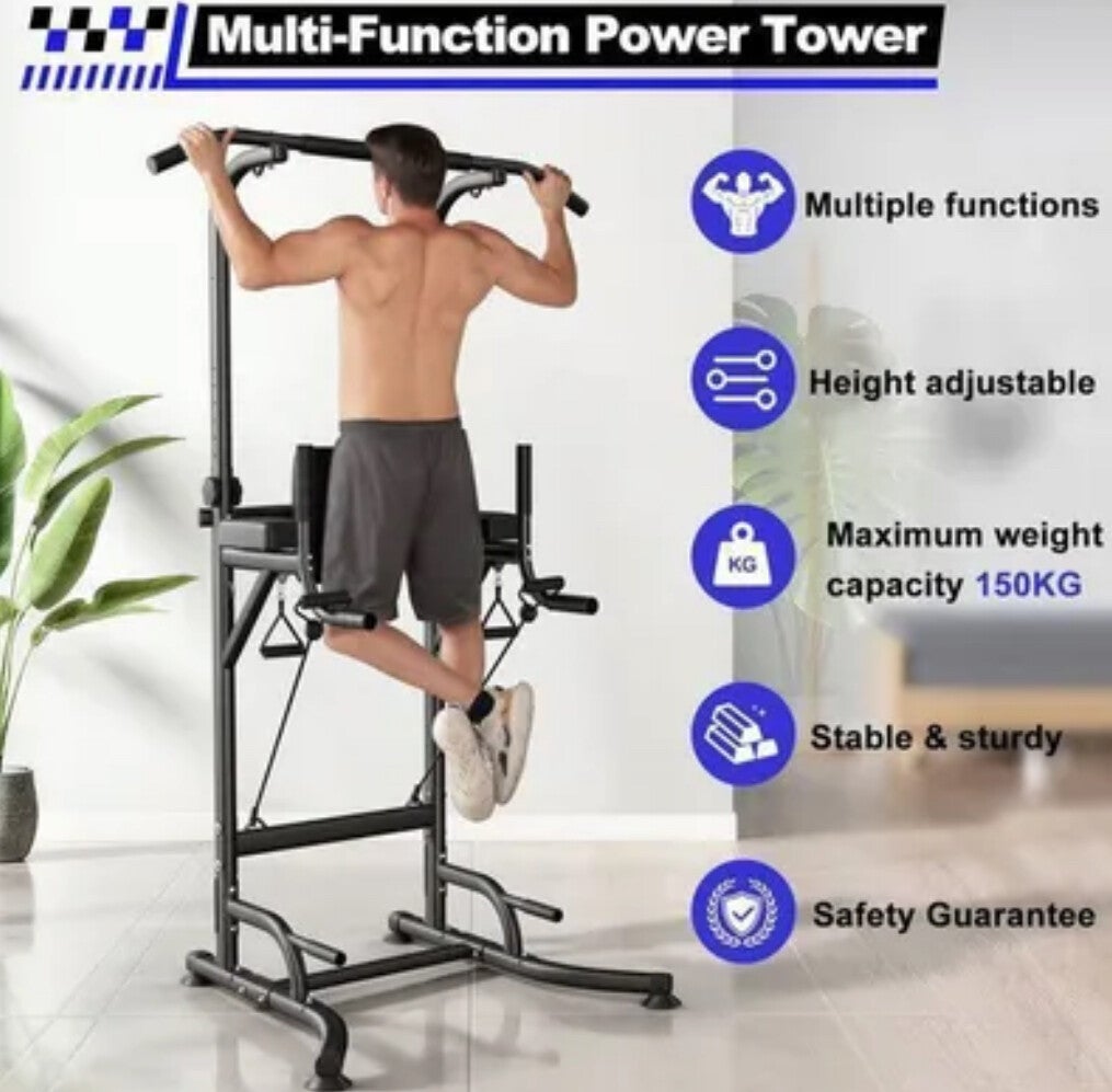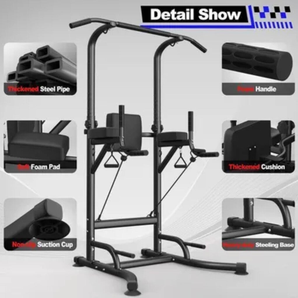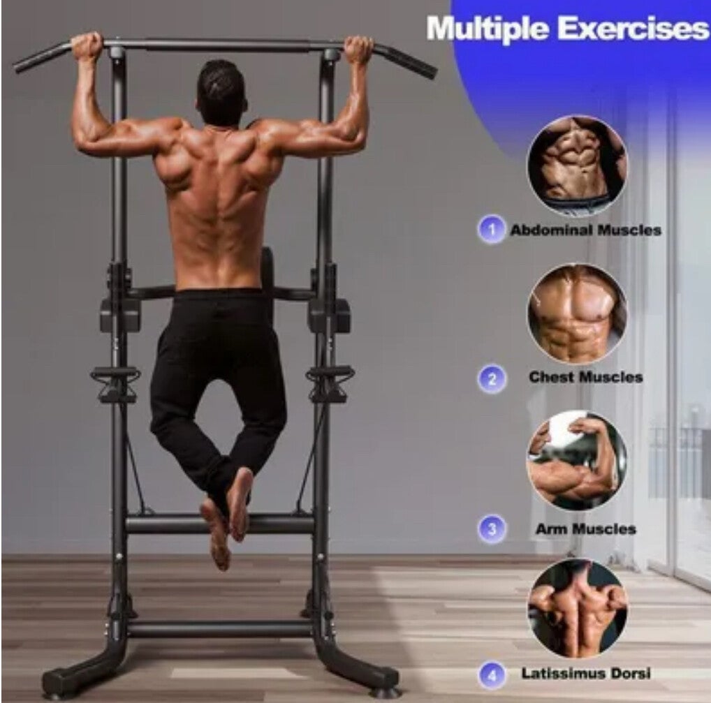 La Power Tower multifonction offre une structure en acier robuste avec mousse épaisse aux points de contact pour un entraînement confortable du haut du corps et des bras. La hauteur est réglable sur 12 niveaux de 183 à 233 cm pour s'adapter aux utilisateurs de différentes tailles et aux configurations domestiques variées. La capacité de charge maximale est de 150 kg, permettant un usage par adolescents et adultes pour des exercices exigeants comme tractions, dips et chaise romaine. L'appareil compacte présente des dimensions de 102 x 93 x 183-233 cm et un poids de 22 kg, conçue pour un montage à monter soi-même et un usage régulier en musculation. La finition noire sobre et la conception mixte en font une solution polyvalente pour l'entraînement familial et l'entretien physique.